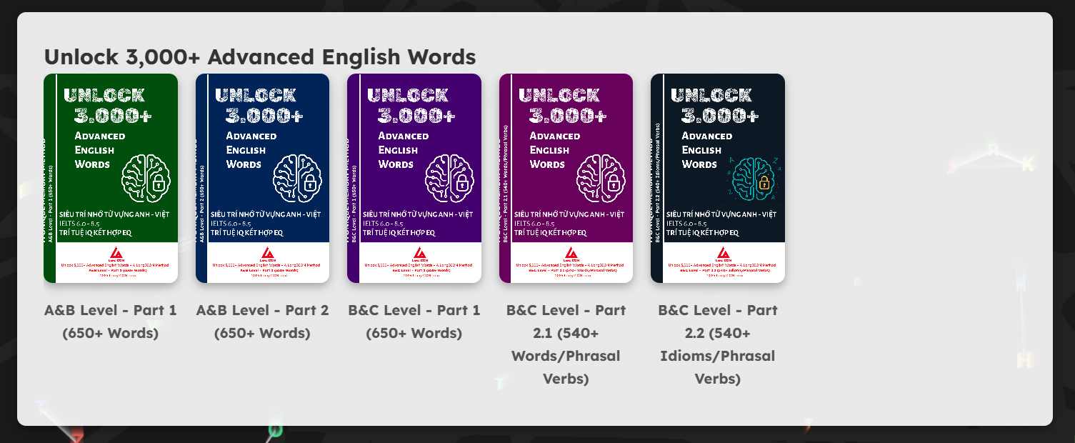 Level B&C: Chinh phục các từ vựng học thuật, Phrasal Verbs (cụm động từ) và Idioms (thành ngữ) phức tạp.
